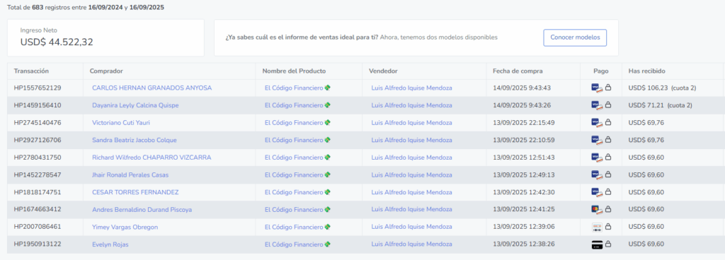 Más de 100 mil dólares en Hotmart y de 300 mil en diversas plataformas
